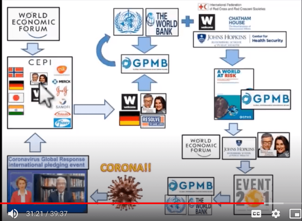 At “Event 201”, Tim Evans of the World Bank, acknowledged that the Global Preparedness Monitoring Board (GPMB) is the voice of the World Health Organization (WHO) and The World Bank (WB) with the intention to secure funding as well as to control the global public health narrative.